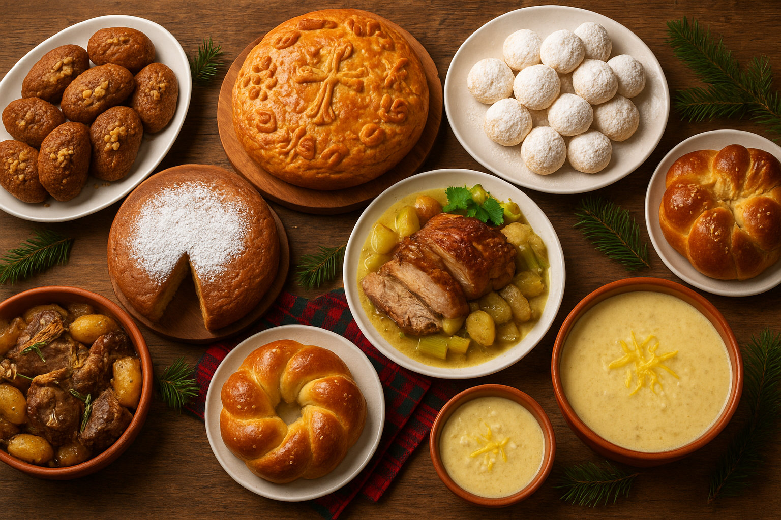 Greek Christmas and New Year celebrations are deliciously chaotic, full of warmth, joy, and more desserts than any one table should legally hold. From honey-soaked cookies to legendary roasts and the thrilling hunt for the lucky vasilopita coin, each dish carries tradition, love, and just the right amount of family drama.